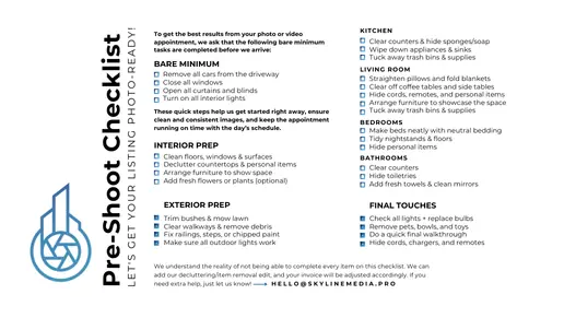 To ensure a smooth and efficient appointment, we ask that the following bare minimum tasks are completed before our team arrives: